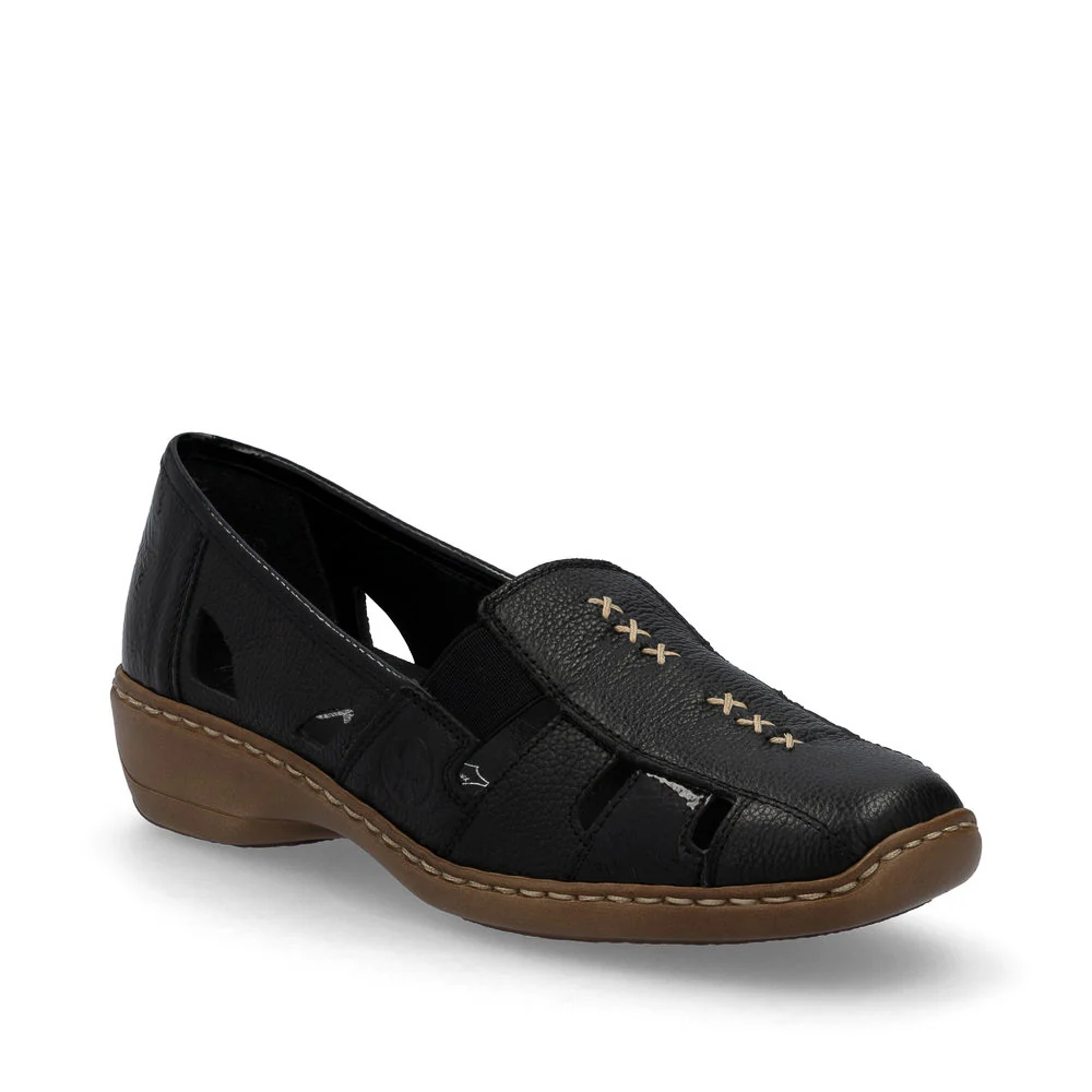 Passez l'été avec style grâce aux chaussures à enfiler pour femme 41385-02 de Rieker. Les fentes autour de la chaussure assurent une bonne circulation d'air pour les temps chauds, tout en ajoutant une touche d'élégance. La semelle légère et absorbante des chocs vous garantit un confort optimal. Profitez d'un été en toute légèreté !