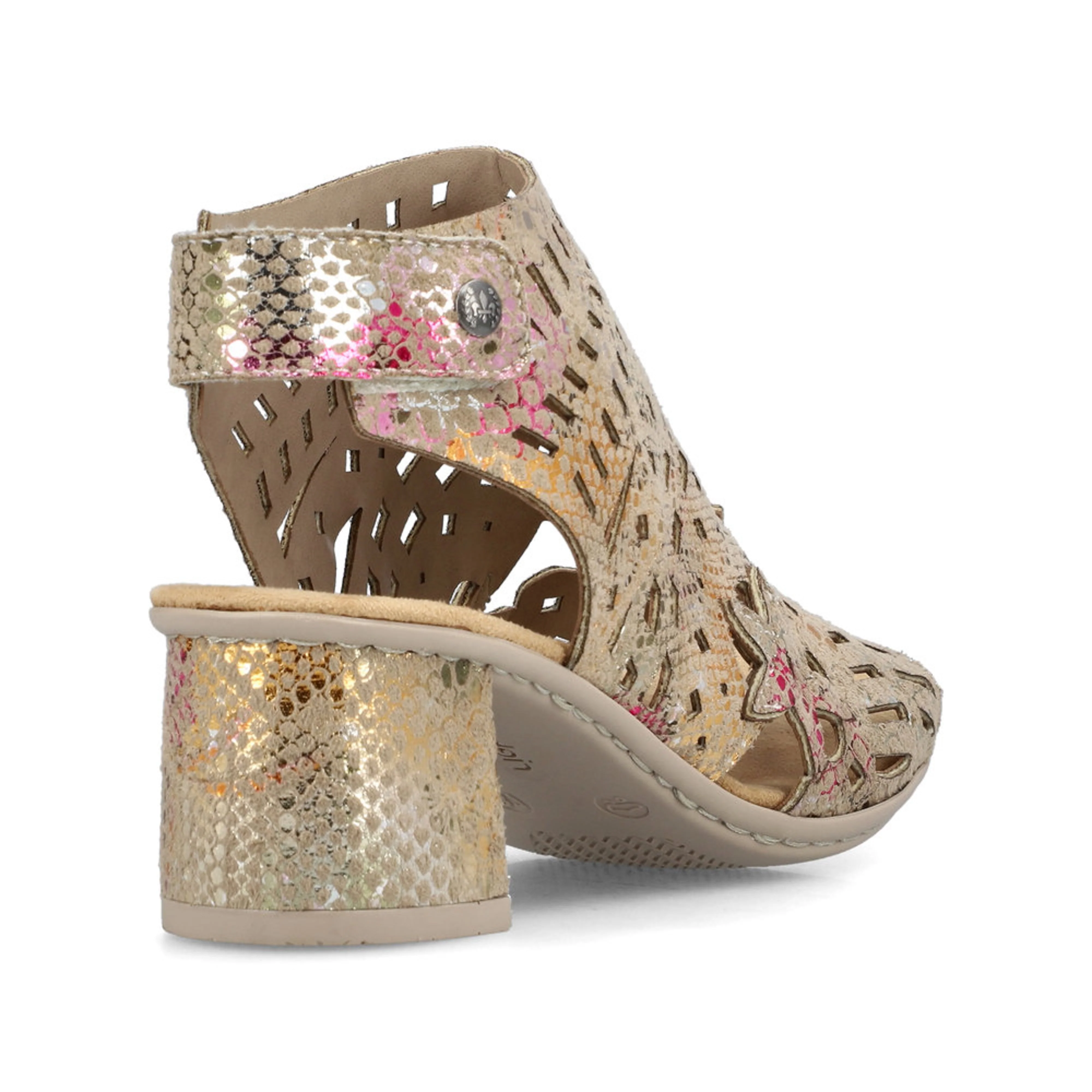 Ces sandales à brides en bronze de Rieker impressionnent par leur design moderne et leur grand confort. Avec leur fermeture à velcro à la cheville, elles sont facilement enfilables. Le style ajouré apporte une touche finale parfaite et un look saisissant. La semelle légère et amortissante avec talon bloc offre un confort optimal.