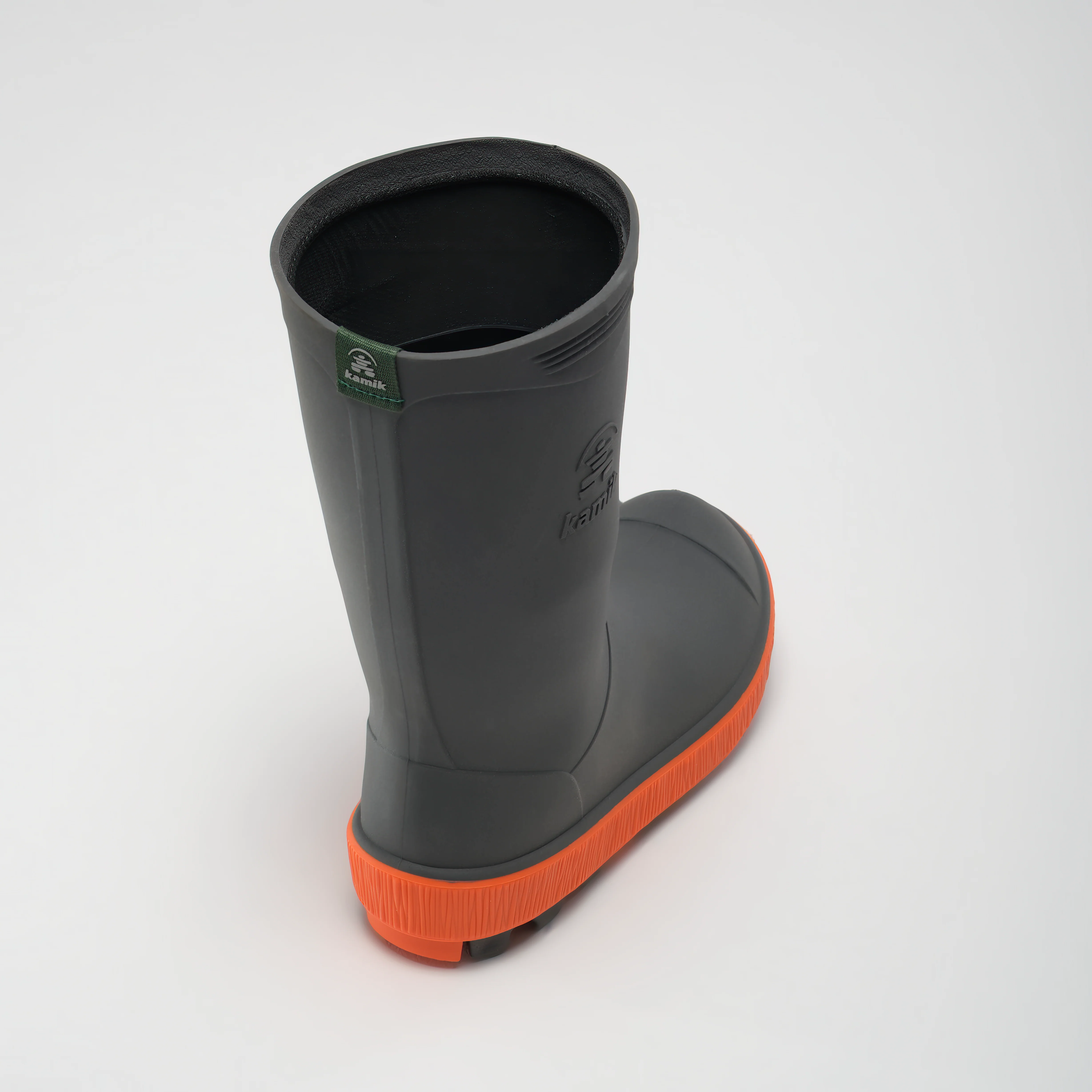 Les bottes de pluie pour enfants RIPTIDE par Kamik transforment les journées pluvieuses en aventures extraordinaires comme par magie ! Fabriquées au Canada en caoutchouc synthétique 100% imperméables, ces bottes sont légères et recyclables. Grâce aux bandes latérales texturées, ces bottes sont faciles à enfiler, permettant à votre enfant de sortir sauter dans les flaques d’eau au plus vite. Avec une semelle extérieure à crampons qui permet d’éviter l’aquaplanage, votre enfant adorera les journées de pluie.