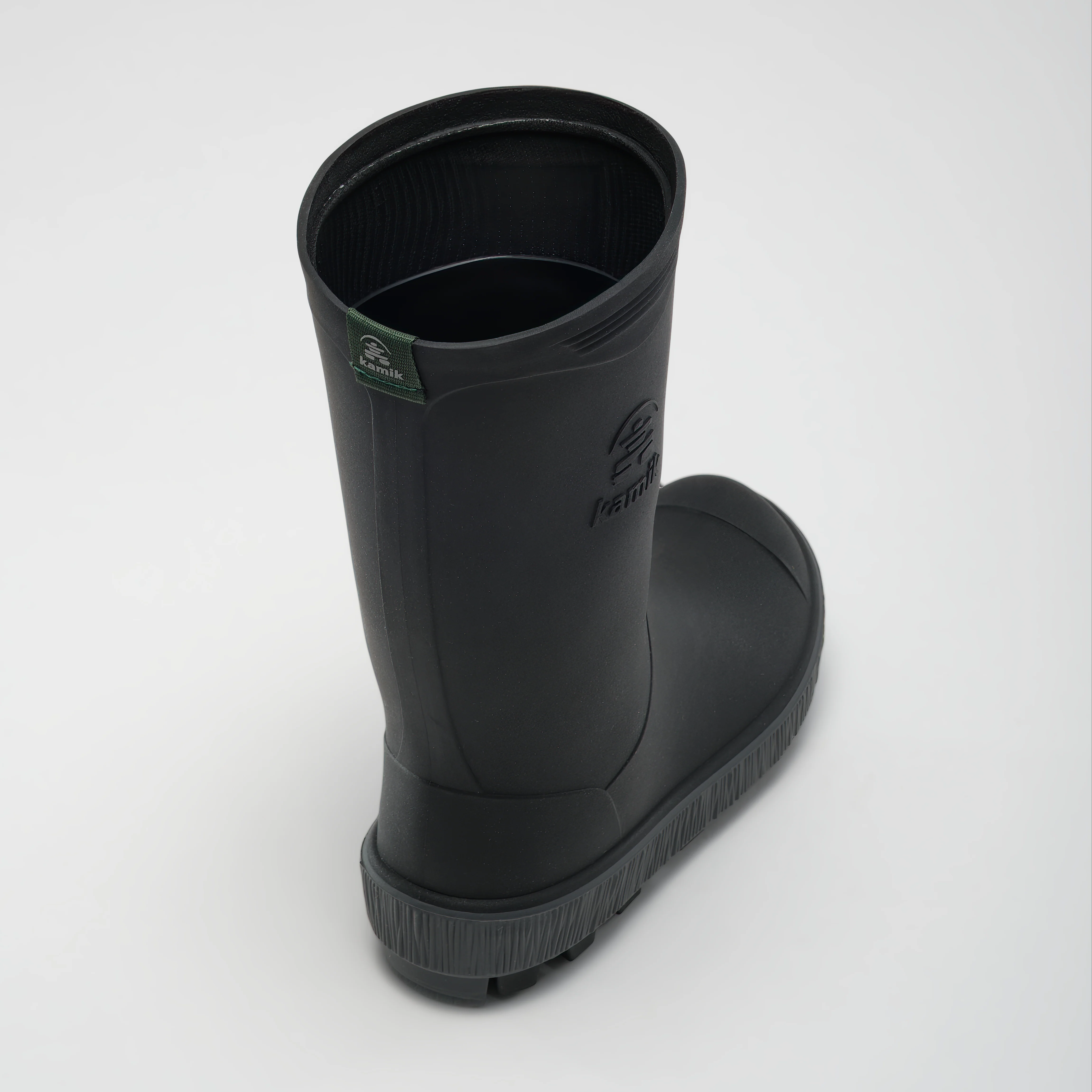 Les bottes de pluie pour enfants RIPTIDE par Kamik transforment les journées pluvieuses en aventures extraordinaires comme par magie ! Fabriquées au Canada en caoutchouc synthétique 100% imperméables, ces bottes sont légères et recyclables. Grâce aux bandes latérales texturées, ces bottes sont faciles à enfiler, permettant à votre enfant de sortir sauter dans les flaques d’eau au plus vite. Avec une semelle extérieure à crampons qui permet d’éviter l’aquaplanage, votre enfant adorera les journées de pluie.