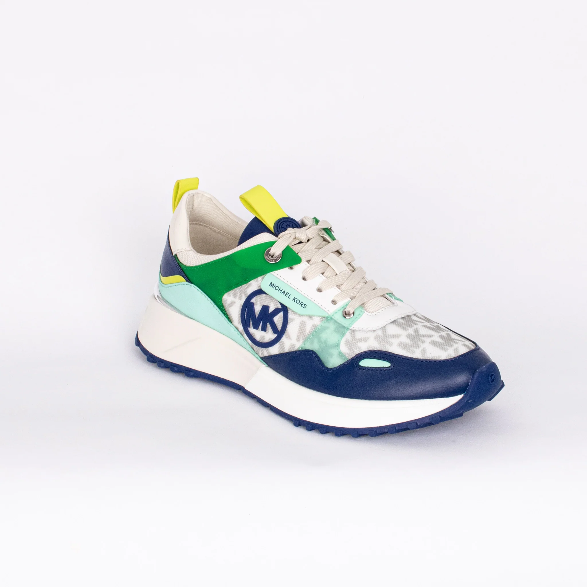 Une chaussure lacée de type sneaker avec du caractère : voici le modèle pour femme THEO TRAINER de la marque Micheal Kors.